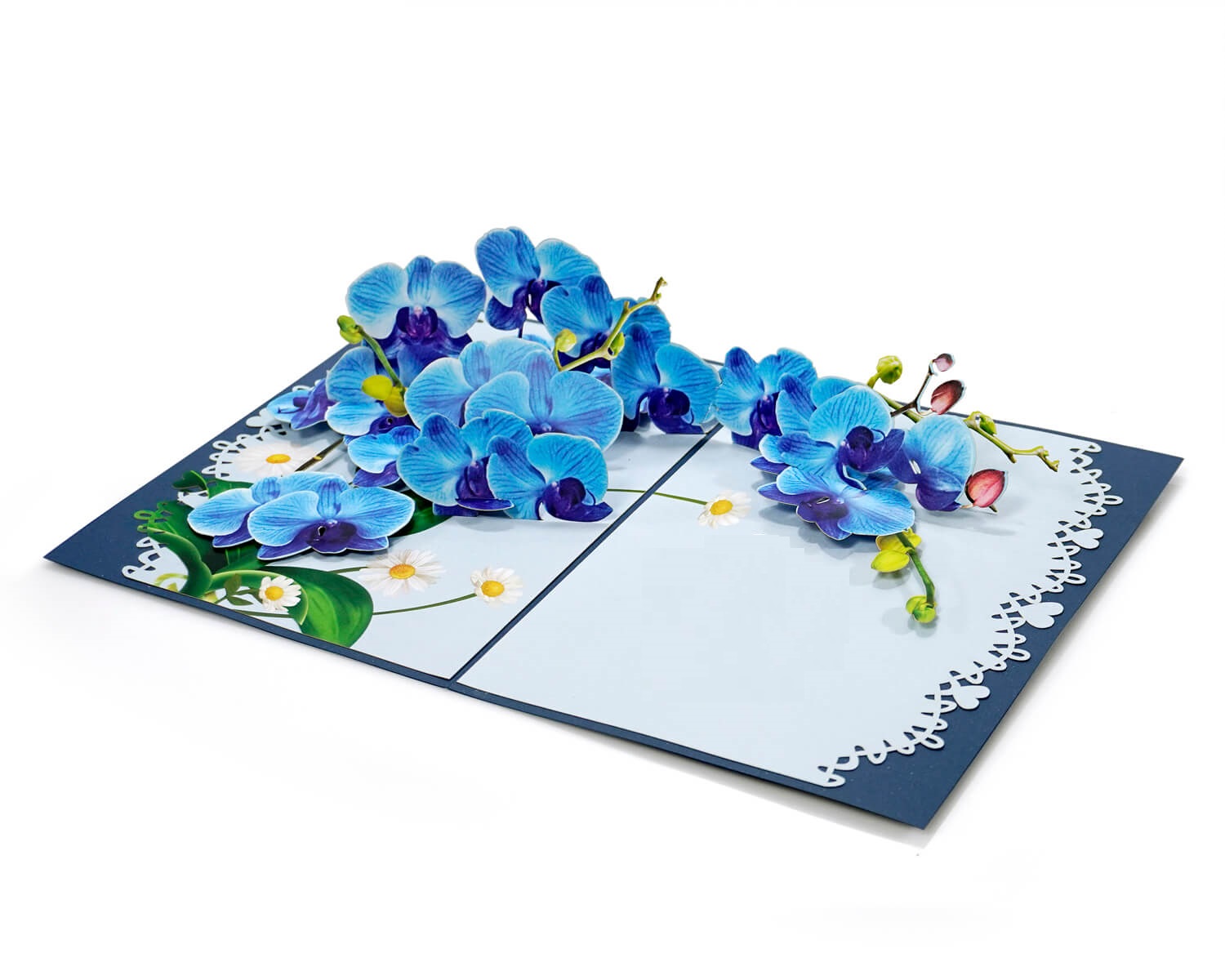 Tặng một món quà tinh tế và sang trọng với thiệp 3D Pop Up hoa lan xanh. Khi mở ra, những cánh hoa lan xanh biếc bật nổi mềm mại và sống động, tượng trưng