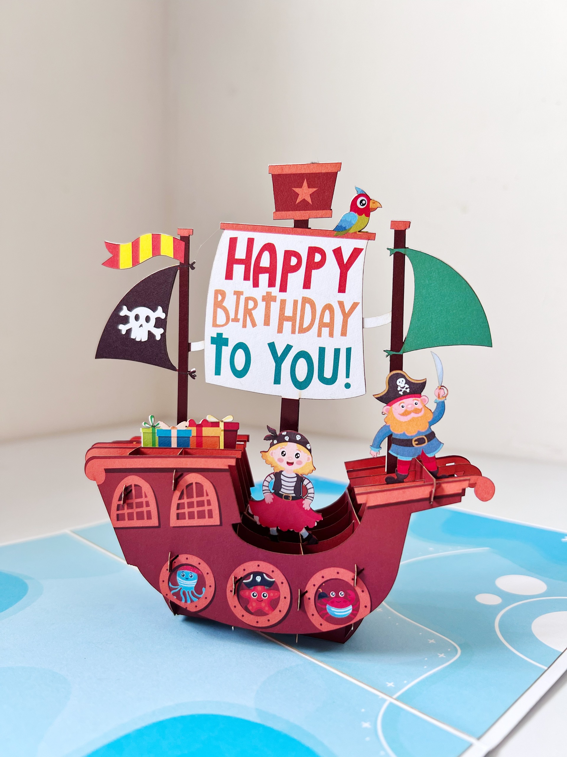 thiệp 3d, thiệp pop up, thiệp nổi, thiệp sinh nhật bé trai, thiệp thuyền cướp biển, thiệp hải tặc, thiệp sinh nhật vui nhộn, thiệp chúc mừng sinh nhật, pirate ship birthday card, thiệp handmade độc đáo