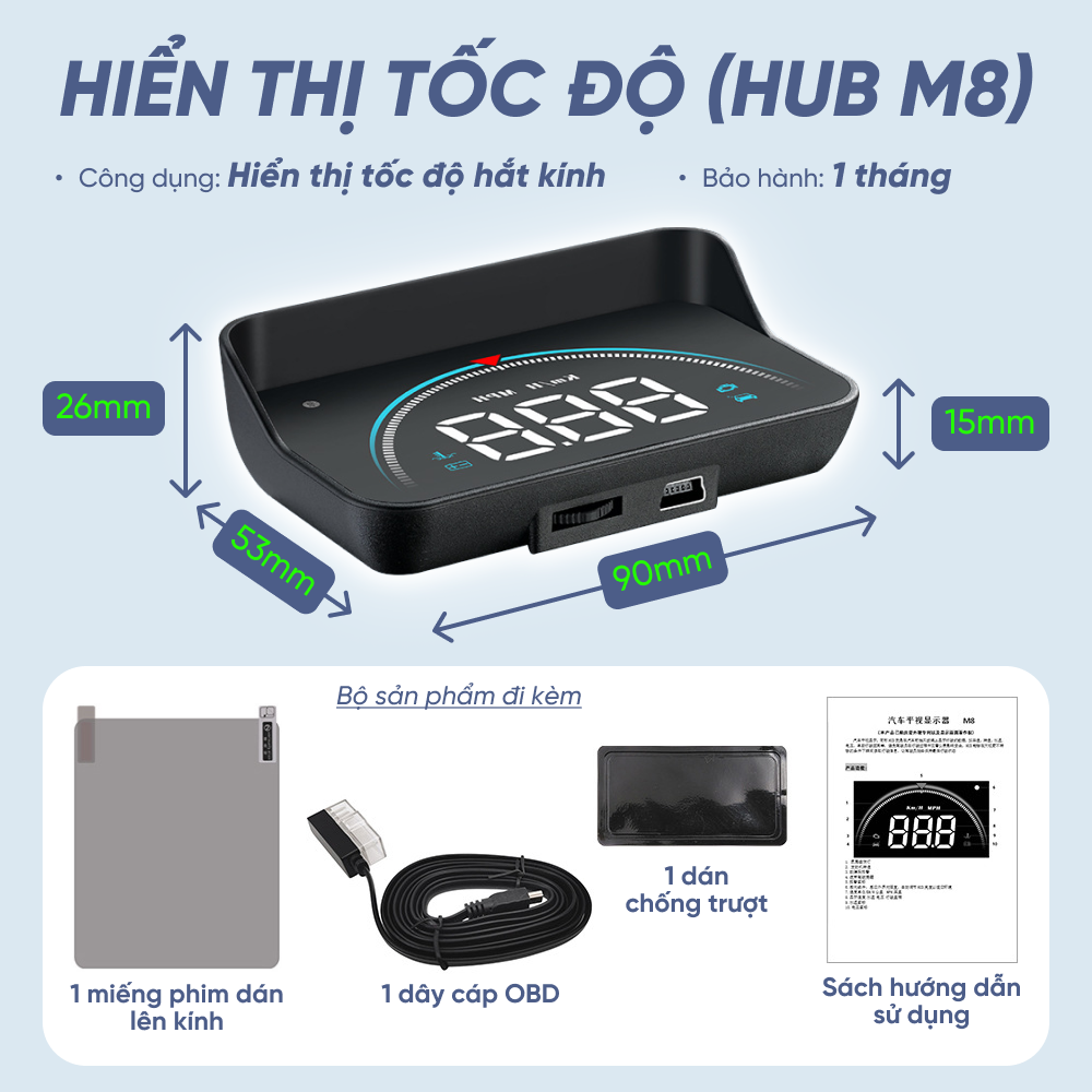 Thiết bị hiển thị và cảnh báo tốc độ hắt kính lái xe ô tô Hud M8 - OBD 2, dùng được cho đa phần các loại xe Thiết bị hiển thị và cảnh báo