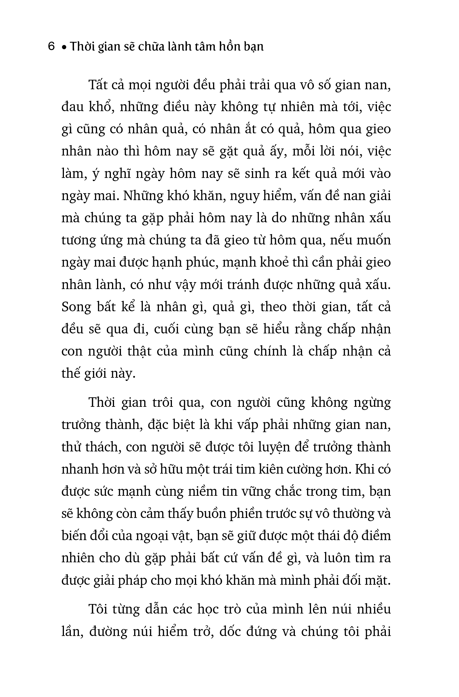 Với bút pháp sâu lắng và triết lý Phật giáo tinh tế, Hiền Tông dẫn dắt độc giả đi qua những góc nhìn mới về khổ đau, nhân quả và sự vô thường. Cuốn sách nhấn mạnh rằng mọi nỗi buồn rồi cũng sẽ qua đi, mọi mất mát rồi cũng sẽ nguôi ngoai, và thời gian chính là phương thuốc hữu hiệu nhất để chữa lành vết thương trong tâm trí con người.