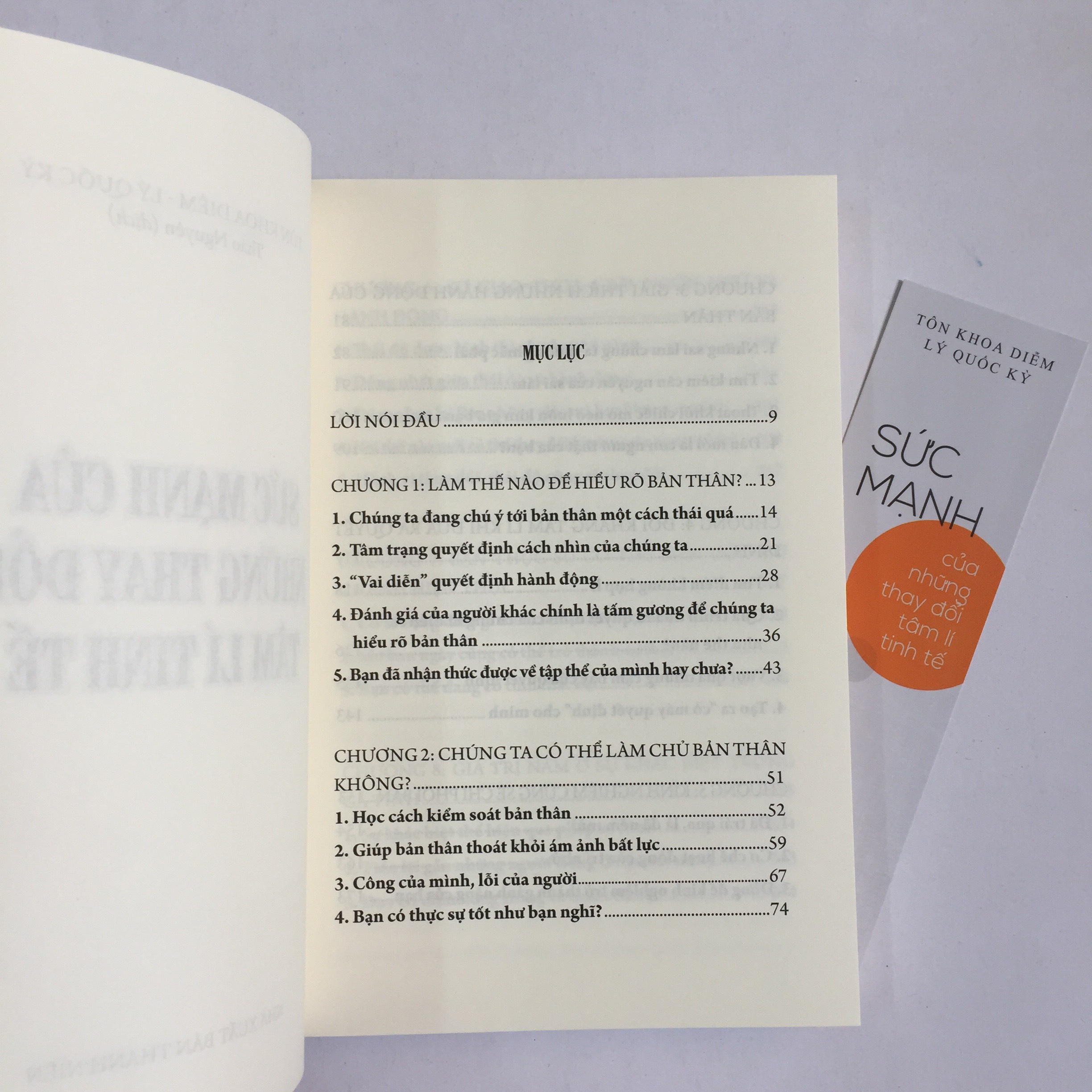 - Bạn đã thực sự hiểu rõ về bản thân mình chưa? Liệu bạn có trả lời được câu hỏi “Mình là ai” không? Điều tưởng chừng như đơn giản này thực chất lại là vấn đề không hề dễ dàng. Benjamin Franklin từng nói: “Có ba thứ cực kỳ cứng: thép, kim cương và tự thấu hiểu bản thân”. Quả thật, hiểu được bản thân là điều cực kì khó khăn. Thông thường, chúng ta thường hiểu về mình thông qua những gì người khác đánh giá. Ngoài ra, chúng ta luôn cho rằng mình là tiêu điểm chú ý của người khác và để tâm trạng chi phối cách nhìn nhận sự việc, thế giới xung quanh trong khi thực tế có thể không phải như chúng ta thấy. Và làm thế nào để hiểu rõ bản thân Cuốn sách được thể hiện một cách gần gũi hơn với độc giả, để độc giả có thể dễ dàng lí giải được tâm lí học, dễ dàng “đọc hiểu” được chính bản thân mình. Cuốn sách chỉ ra những khó khăn mà mọi người có khả năng phải đối mặt, đồng thời đưa ra những giải pháp tương ứng. Hãy cầm ngay trên tay cuốn sách “Sức mạnh của những thay đổi tâm lý tinh tế” để niềm đam mê và ước mơ còn dang dở của bạn trở thành hiện thực. Bạn chỉ sống một lần trên đời, nắm bắt cơ hội để thay đổi khi bản thân còn có thể. Cảm ơn bạn đã tham khảo combo sách này. Chúc một ngày tốt lành!