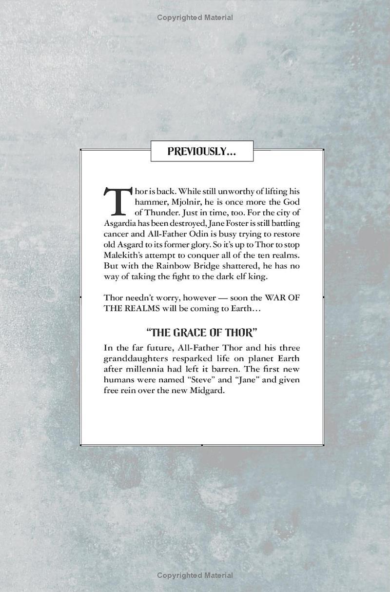 The myth-making climax of Jason Aaron’s legendary THOR run! The Odinson has regained his mantle — but Mjolnir has been destroyed! With conflict spreading through the realms, Thor will need new hammers. Lots of them! But will any amount of weapons be enough against such threats as the unstoppable Juggernaut and the Queen of Cinders? Valkyries, angels and more join the fight as the dark elf Malekith’s War of the Realms spills into Midgard, engulfing Thor and all those he loves! Everything is about to change, for Thor and for Asgard. Then, at the end of time, witness the final fate of the ancient King Thor — as he encounters a very old friend, and faces his hated stepbrother Loki one last time! Jason Aaron and artist Esad Ribić reunite for the epic conclusion!