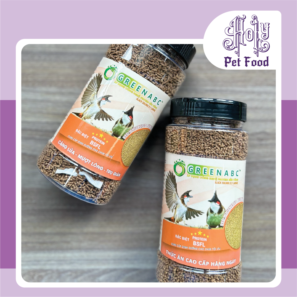 GREENABC - THỨC ĂN CHIM CHÀO MÀO GREENABC là thức ăn cao cấp dành cho CHIM CHÀO MÀO. Đặc biệt sản phẩm GREENABC được sản xuất theo phương pháp Áp dụng công nghệ PROTEIN bền vững từ bột đạm G.Meal rất giàu PROTEIN – CANXI – LIPID có trong BSFL, đã được Mỹ (AAFCO) và EU chấp nhận đưa vào công thức cho ngành sản xuất thức ăn dành cho vật nuôi. Sản phẩm GREENABC cung cấp các giá trị dinh dưỡng bền vững cho thú cưng, giúp chim:      + Kích thích vị giác, ăn ngon miệng hơn.      + Tiêu hóa tốt, tăng cường hấp thụ các dưỡng chất.      + Cơ thể khỏe mạnh, cân đối săn chắc, căng lửa đều ổn định.      + Tăng cường miễn dịch, chống lại các bệnh thường gặp.      + Đặc biệt với thành phần G.Meal đầy đủ các dưỡng chất cần thiết giúp cơ thể phát triển toàn diện.