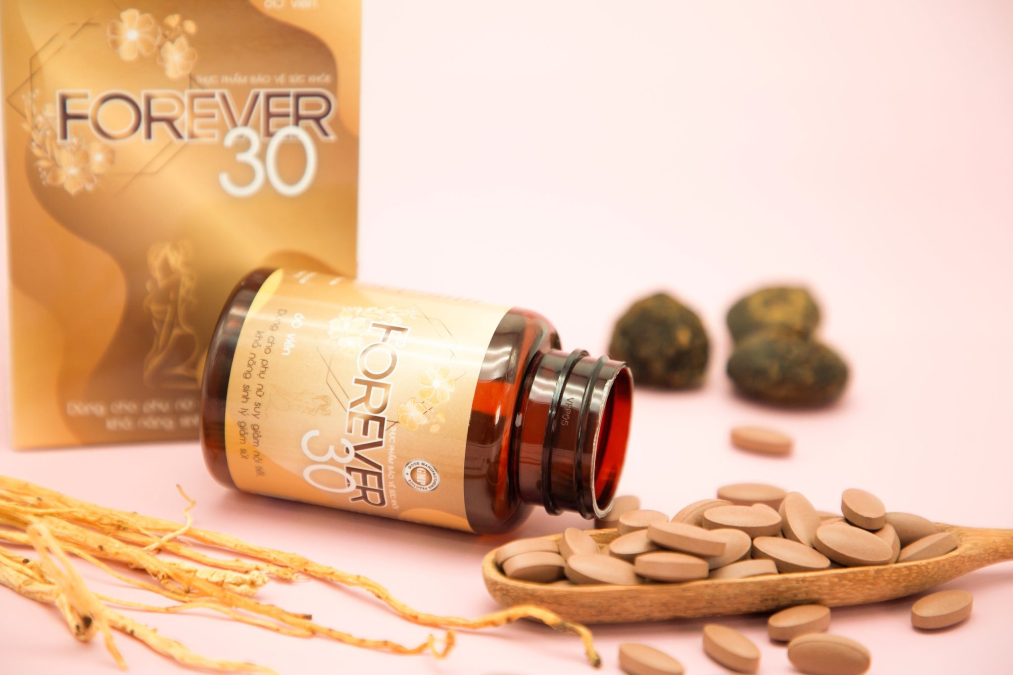 Từ những nghiên cứu chuyên sâu về các loại thảo dược, các tiến sĩ, chuyên gia đầu ngành đã đưa ra công thức có trong TPBVSK Forever30. Với thành phần chiết xuất từ các thảo dược thiên nhiên như: ích mẫu, đương quy, xuyên khung, đảng sâm … và đặc biệt là chiết xuất 2 thảo dược vô cùng giá trị là Nhân sâm Peru và Thiên môn chùm.