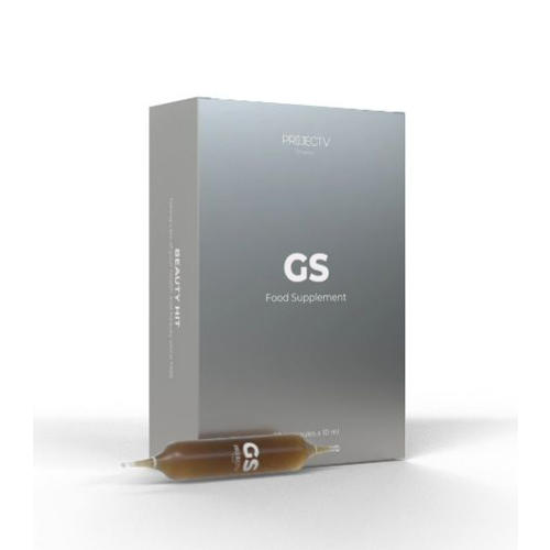 PROJECT V - GS | VẺ ĐẸP TOÁT RA TỪ BÊN TRONG GS - Nước uống đẹp da với thành phần tự nhiện GS hội tụ công thức hoàn hảo từ các chất chống oxy hóa và dinh dưỡng, có tác dụng duy trì độ ẩm và vẻ đẹp rạng rỡ tự nhiên của làn da. Các thành phần đột phá trong GS bảo vệ lớp hạ bì khỏi tác hại của môi trường, đẩy nhanh quá trình tái tạo da và chuyển hóa collagen, cải thiện tình trạng của tóc và móng ở mọi lứa tuổi. Cùng với dòng mỹ phẩm Beauty Hit, sản phẩm GS là một phần thiết yếu cho liệu trình làm đẹp toàn diện của bạn.