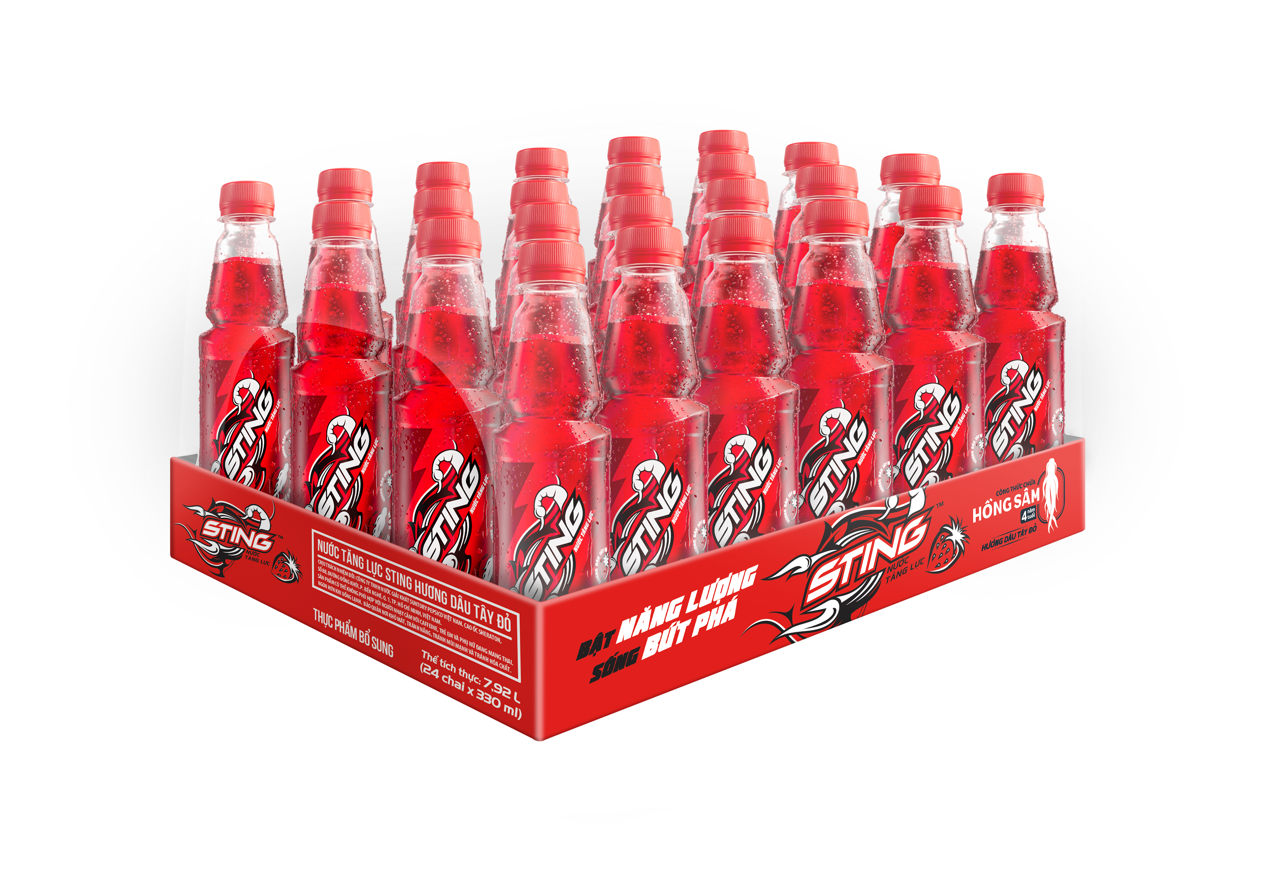 - Nước tăng lực Sting hương dâu tây đỏ với vị dâu ngon sảng khoái cùng công thức chứa Hồng sâm 4 năm tuổi, cho bạn nguồn năng lượng mạnh mẽ để biến mỗi ngày thành một cuộc phiêu lưu.