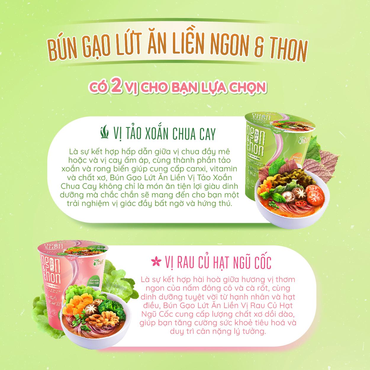 ✨Thùng 24 ly bún gạo lứt ăn liền NGON & THON - Vị tảo xoắn chua cay