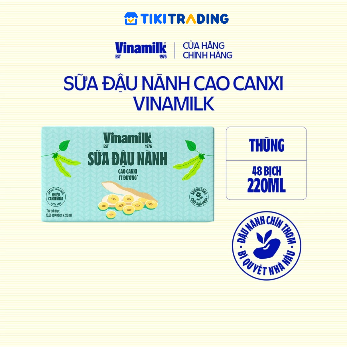 Sữa đậu nành cao canxi Vinamilk - Thùng 48 hộp 180ml Sữa ngon nhà nấu, thơm hương lá dứa nhờ ứng dụng công nghệ độc quyền giúp bảo toàn dinh dưỡng và mùi vị