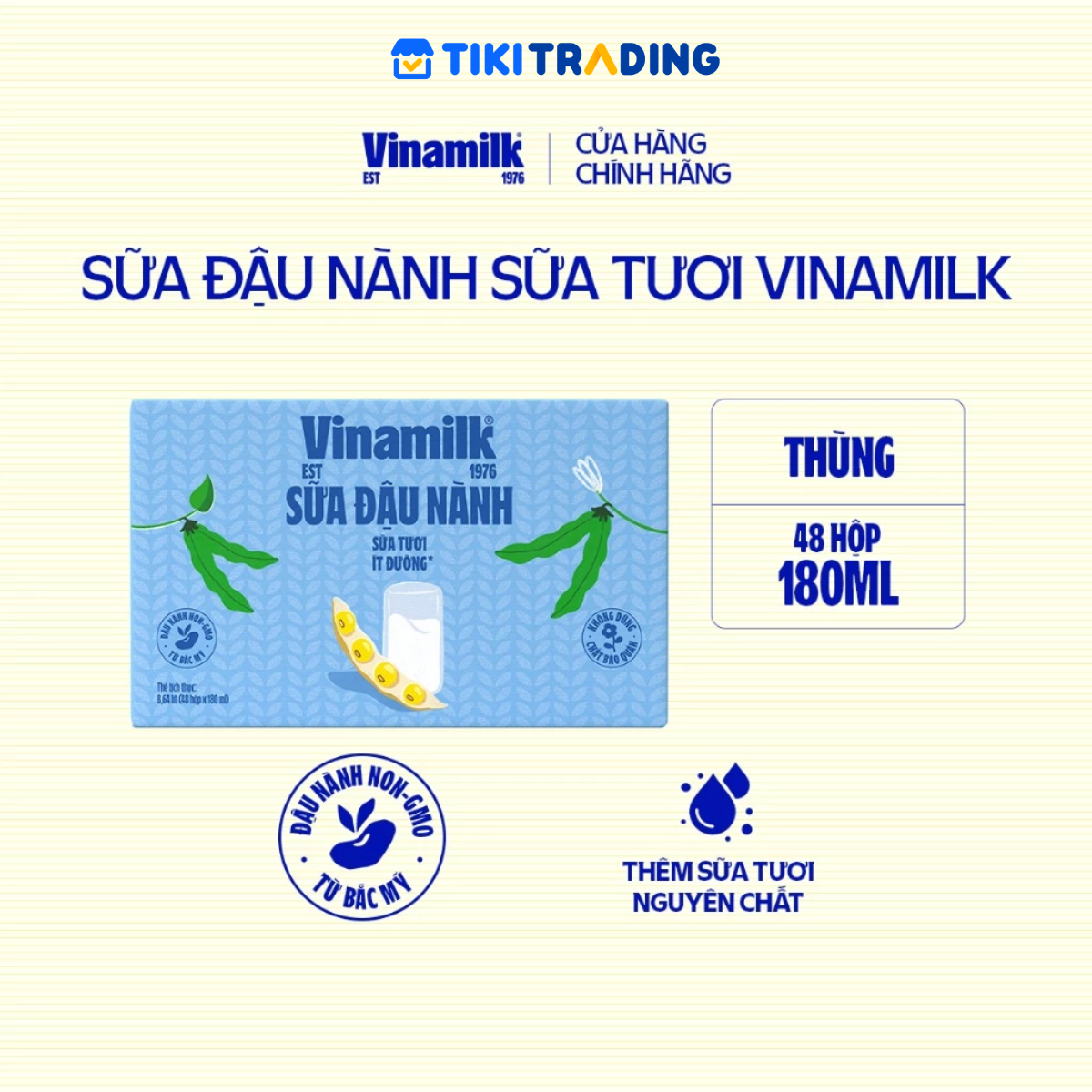 Mua tại Tiktok[CÓ THỂ NHẬN BB MỚI/CŨ] : Sữa đậu nành Tươi Vinamilk 180ml • Được bổ sung sữa tươi, giúp nạp năng lượng, giảm mệt mỏi. • Gấp đôi Canxi cho xương chắc khỏe • Hạt đậu nành không biến đổi gen