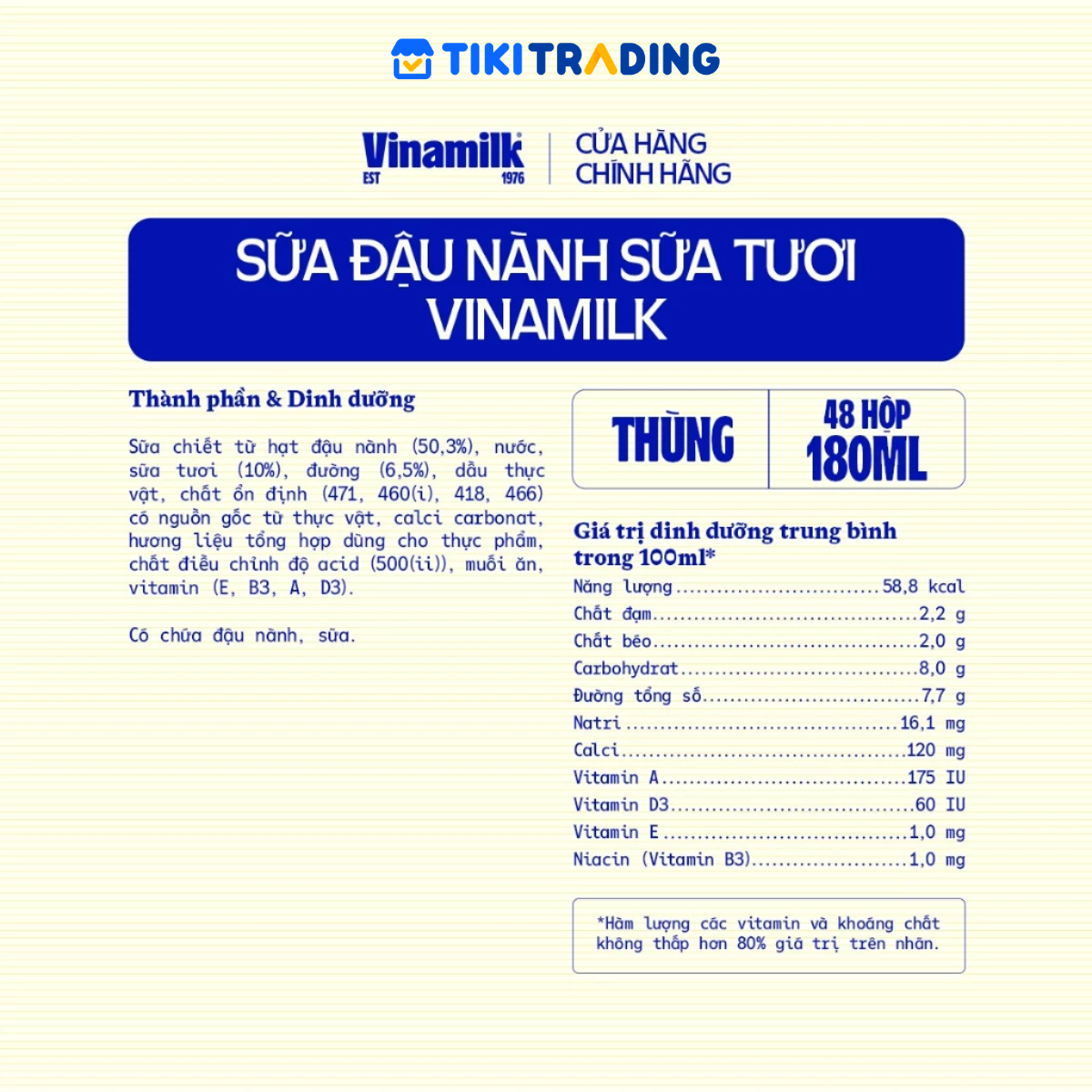 ✨Thùng 48 hộp sữa đậu nành sữa tươi ít đường Vinamilk 180ml