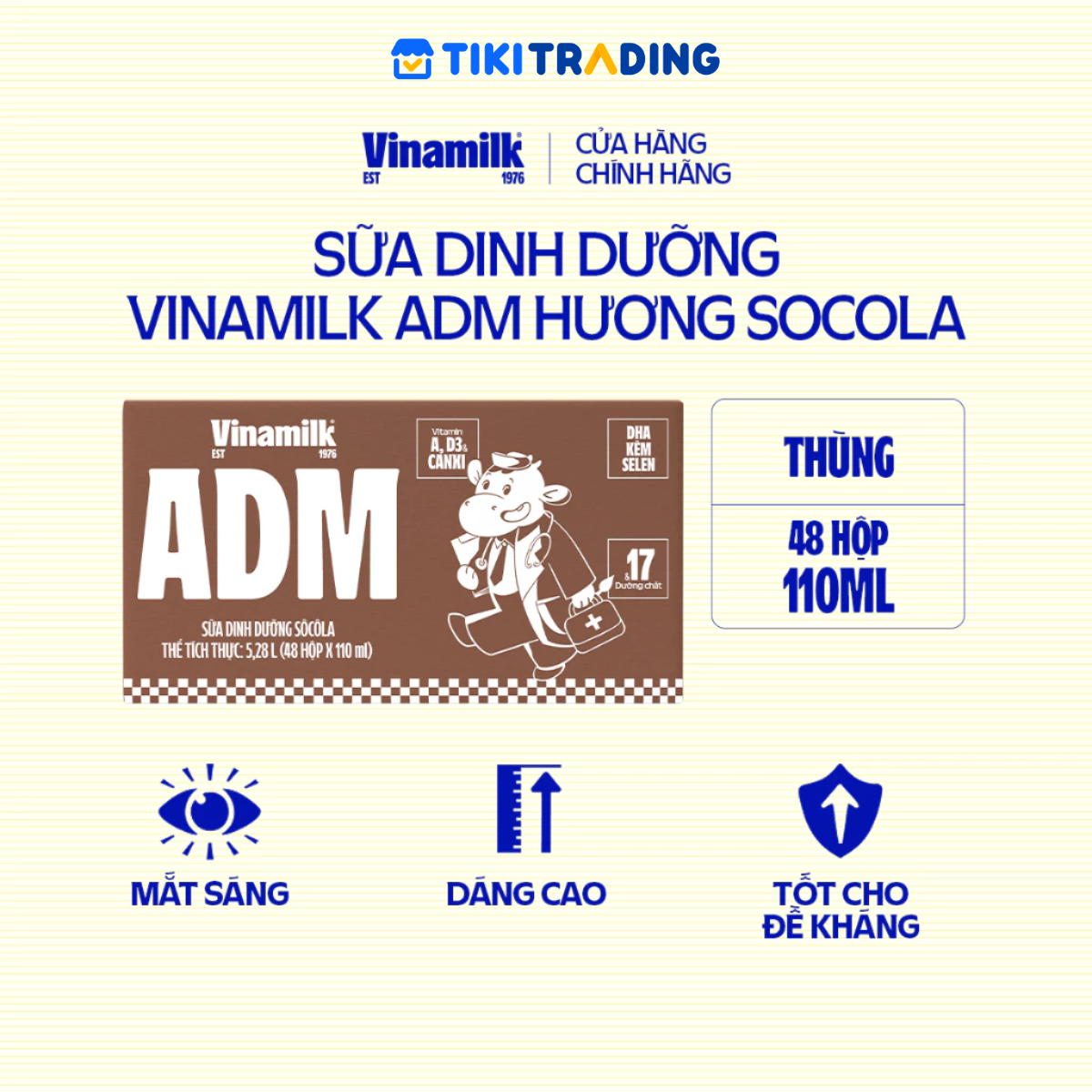 Mua tại TiktokQuy cách thùng: 12 lốc/thùng Sữa Vinamilk ADM mới với dòng sữa thơm ngon mát lành, bổ sung dưỡng chất giúp trẻ "KHỎE ĐỀ KHÁNG - SÁNG TƯ DUY Bổ sung: