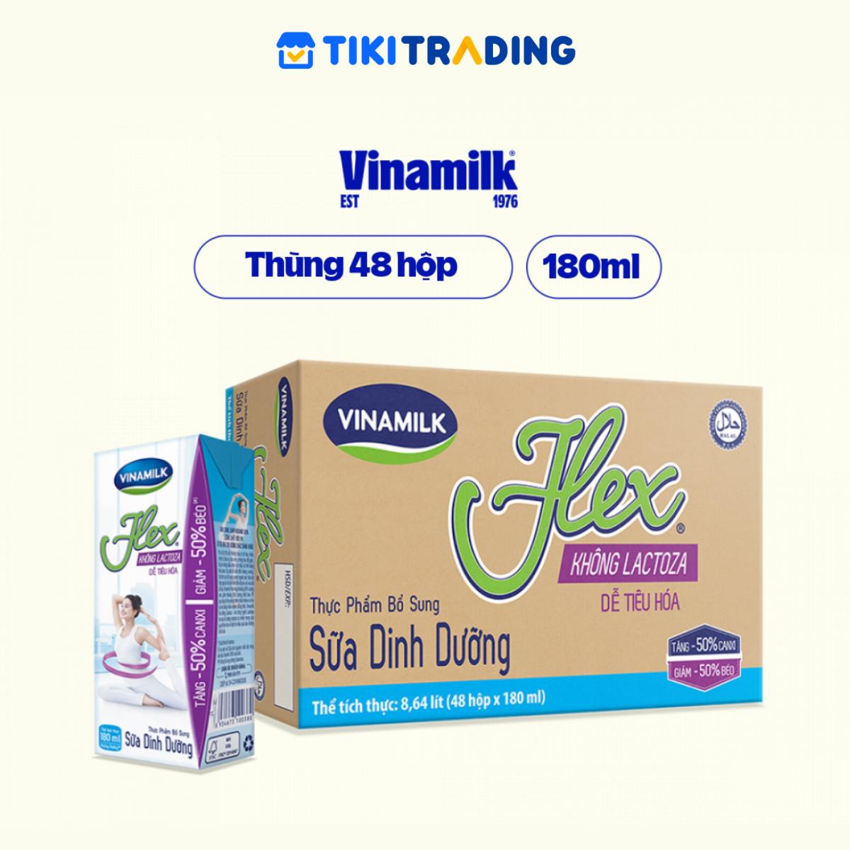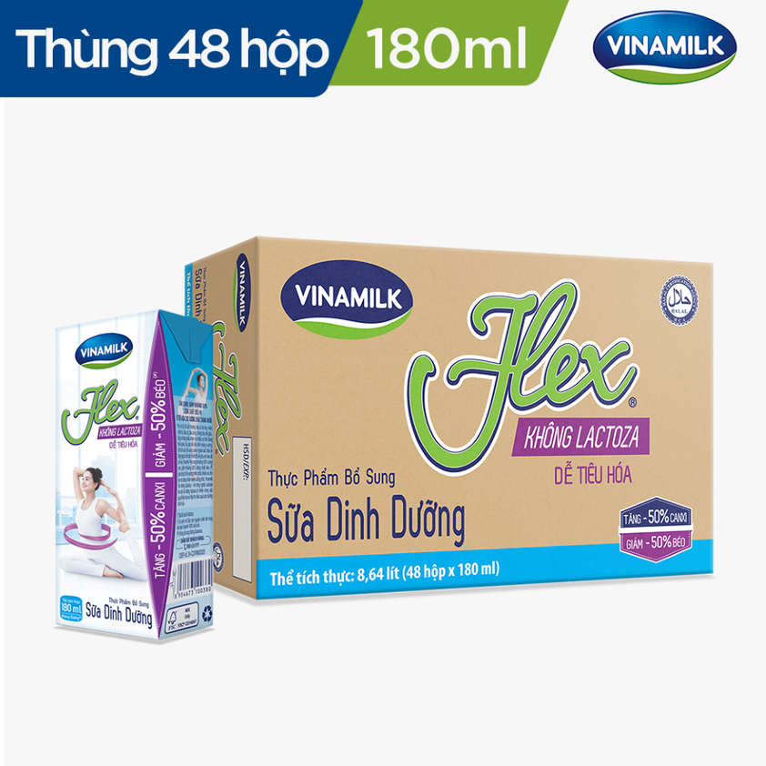 Mua tại Tiktok- Thùng 48 Hộp Sữa tiệt trùng Vinamilk Flex không Lactose (180ml) dành cho cả gia đình, đặc biệt phù hợp cho các đối tượng muốn uống sữa để bổ sung Canxi và Vitamin D nhưng lại có hiện tượng sôi bụng và khó tiêu do cơ thể không dung nạp Lactoza.