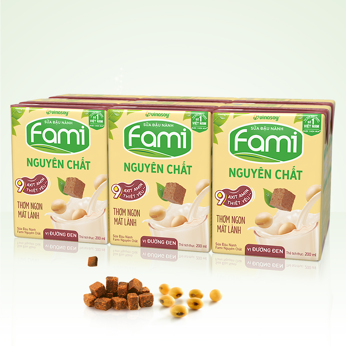 - Thùng Sữa đậu nành Fami nguyên chất vị đường đen (200ml x 36 Hộp) được làm từ 100% đậu nành hạt chọn lọc, không biến đổi Gen (Non - GMO) kết hợp với kết hợp với chiết xuất đường đen, mang đến trải nghiệm mới lạ từ Hương vị ngọt thanh rất theo kịp xu hướng khẩu vị của giới trẻ hiện nay và là nguồn cung cấp dinh dưỡng thiết yếu từ thực vật, tốt cho sức khỏe khi sử dụng hàng ngày.