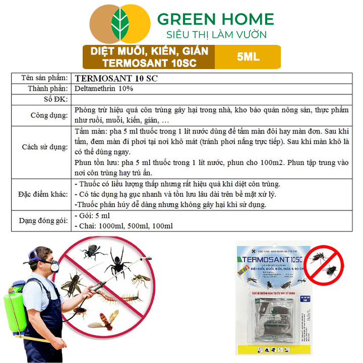 ✨Thuốc Diệt Muỗi GreenHome, TERMOSANT 10SC, Gói 5ml, Chính Hãng, Hiệu Quả Nhanh, An Toàn Khi Sử Dụng