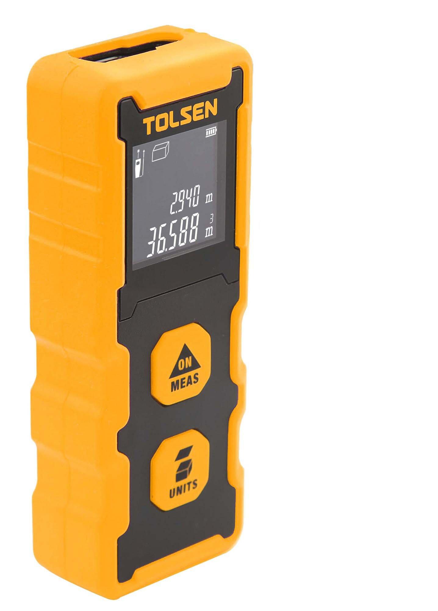 Thương hiệu Tolsen chuyên thiết kế, sản xuất, lắp ráp, cung cấp các thiết bị và dụng cụ công nghiệp dân dụng cỡ lớn và các loại dụng cụ cầm tay đa năng chuyên nghiệp nổi tiếng về chất lượng và hậu mãi tuyệt vời. Các công cụ TOLSEN tập trung vào việc chế tạo các dụng cụ cầm tay chất lượng chuyên nghiệp và các sản phẩm phần cứng liên quan. Tất cả các sản phẩm của TOLSEN đều được kiểm soát chặt chẽ ở mọi bước trong quá trình thiết kế, sản xuất, đóng gói và kiểm soát chất lượng. Các công cụ TOLSEN tin rằng các công cụ chất lượng đề cập đến khả năng sử dụng, hiệu quả và hiệu suất Tolsen có phạm vi sản phẩm khá rộng rãi với trên 2000 sản phẩm bao gồm đủ dụng cụ cầm tay, dụng cụ cơ khí, dụng cụ buộc chặt, dụng cụ cắt, dụng cụ đo, dụng cụ vẽ, vật phẩm PPE, phụ kiện dụng cụ điện, túi và dụng cụ cách điện, Thông số kĩ thuật -Mã sản phẩm: 35172 -Thương hiệu: TOLSEN -Xuất xứ: Trung Quốc -Phạm vi đo: 0,2 - 20m -Kích thước: 100 32,5 22mm -Chức năng: Đo khoảng cách -Phạm vi đo: 20 mét -Độ chính xác uốn khúc: ± 2 mm -Loại pin: 2 * AAA 1.5V -Tuổi thọ pin: 5000 lần đo -Đèn nền -Tính năng, đặc điểm -Đo khoảng cách, -Kích thước nhỏ -Cực kỳ dễ sử dụng, -Vỏ cao su mềm -Hoàn hảo cho người dùng DIY. -Đóng gói: hộp màu