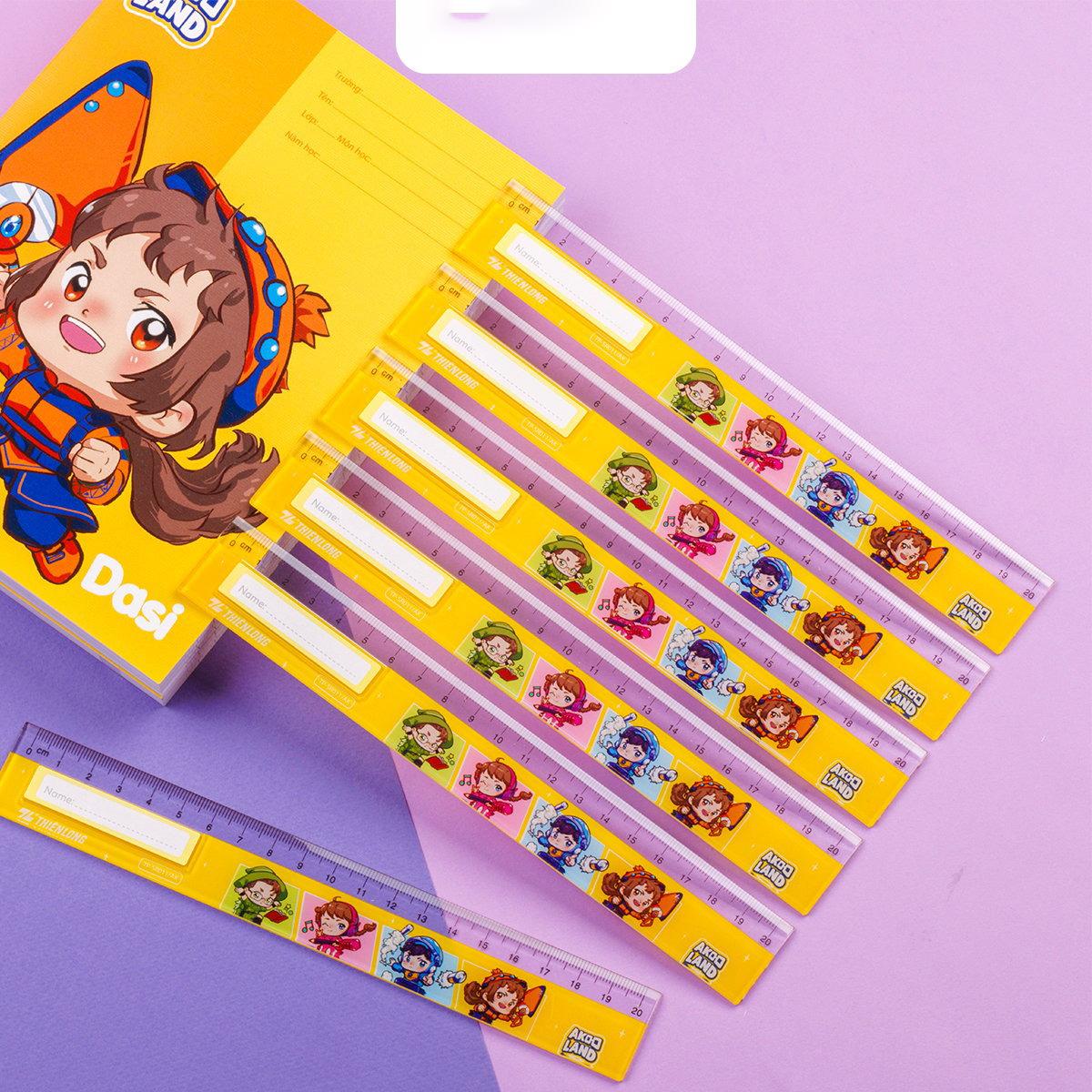 Mua tại TiktokThước Thẳng 20 cm - Nhân Vật Akooland Thế Giới Học Cụ Thần Kỳ - Thiên Long TP-SR011/AK được in hình ảnh những nhân vật truyền thuyết thế giới AKOOLAND: Pháp Sư -TAHI, Tiên Tử CICI, Đấu Sĩ DASI, Thiên Tài Công Nghệ FIHA.