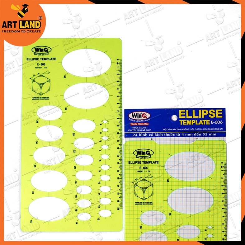 Thước vẽ Ellipse Template - WinQ E606Thước Elip làm bằng nhựa dẻo chất lượng cao, độ đàn hồi cao, Thước Elip có vạch kẻ chia độ và chia kích thước chính xác. Thước Elip không bị cong vênh hay rạn nứt...