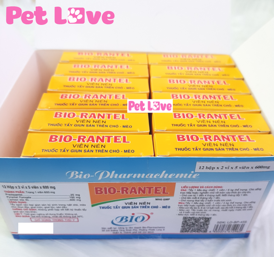 ✨Thuốc xổ giun sán chó mèo Bio Rantel (1 hộp x 120 viên)