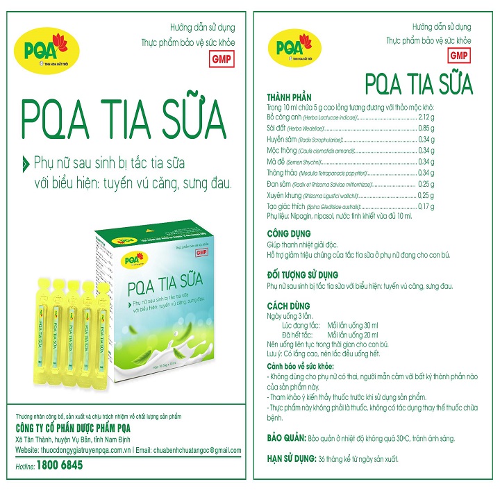 ✨Tia Sữa PQA Giúp Thanh Nhiệt Giải Độc Và Giảm Triệu Chứng Của Tắc Sữa Ở Phụ Nữ Đang Cho Con Bú Hộp 10 Ống