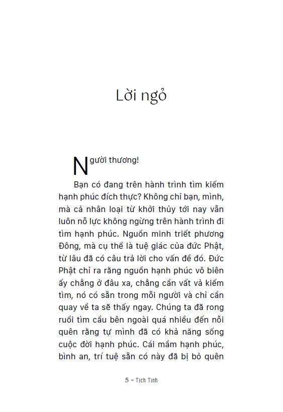 Tịch Tịnh - Thích Đồng Tâm“Tịch tịnh” là cuốn sách mới nhất của Đại đức Thích Đồng Tâm, tập hợp những “thiền ngẫm” mỗi ngày. Các bài viết đều ngắn, đôi khi rất ngắn, nhưng chứa đựng trong đó là tạng ...