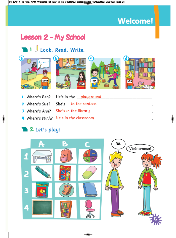Share It! 4 Workbook The Workbook provides reinforcement of the Student Book lessons' content, and can be used in class or as homework.