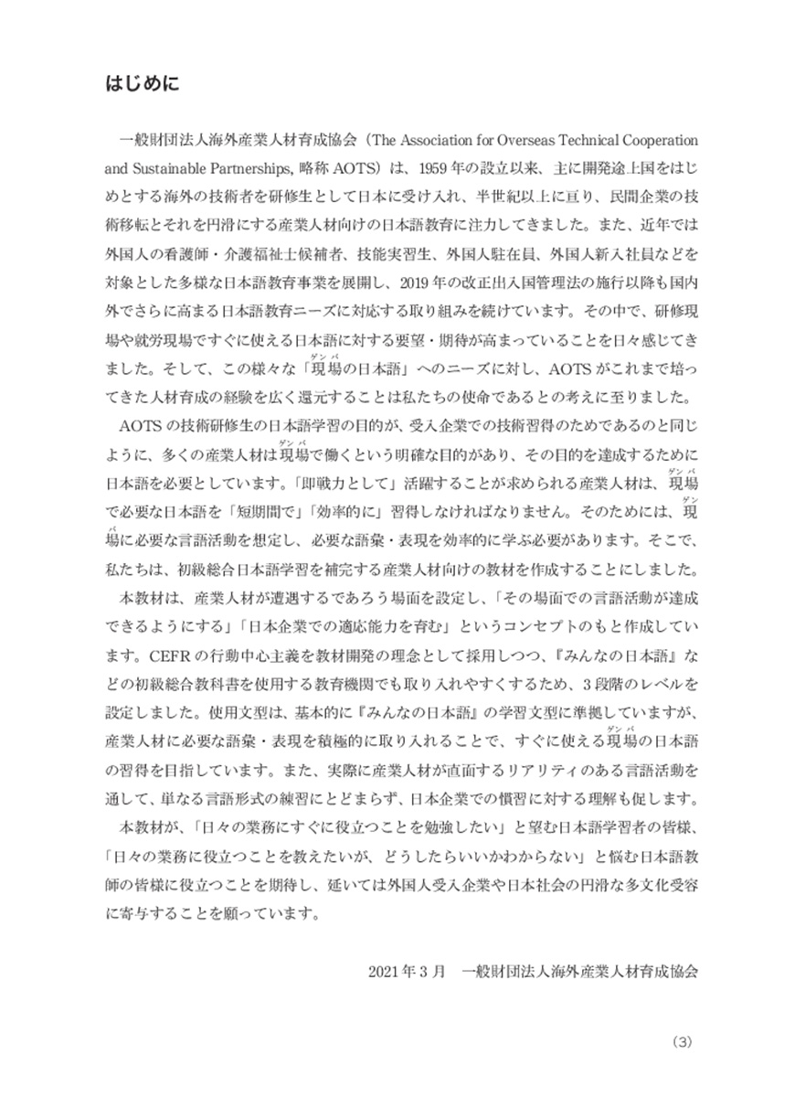 Giáo trình giúp học viên biết cách sử dụng tiếng Nhật chính xác trong các tình huống và bối cảnh thường gặp trong thực tế tại các công ty, nhà máy ở Nhật Bản. Ngoài ra, học viên cũng phát triển dần kỹ năng đặt vấn đề nghi vấn "tại sao", "như thế nào" đối với các tình huống, bối cảnh được đặt ra trong giáo trình, qua đó nắm bắt sâu sắc hơn về văn hóa doanh nghiệp Nhật Bản.