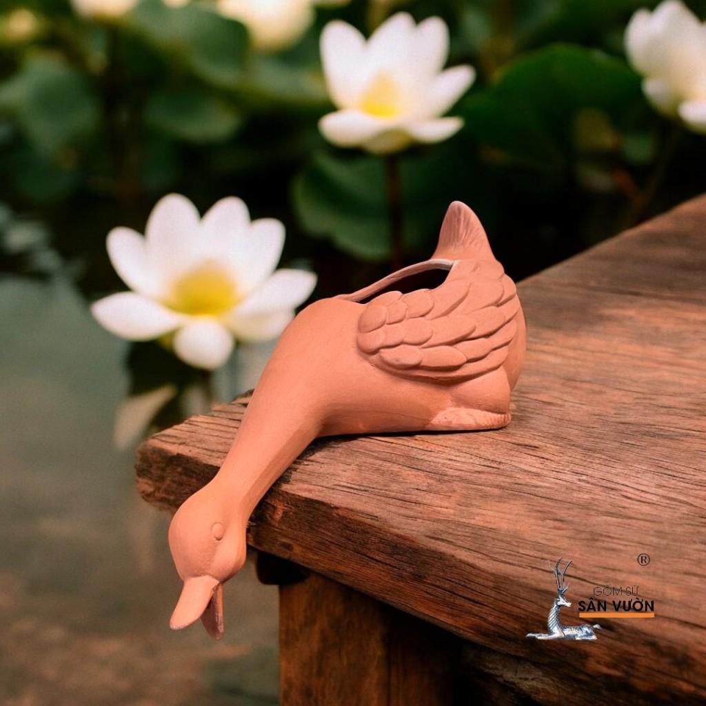 • Tên sản phẩm : Tiểu Cảnh Thủy Cảnh Đất Nung Hình Vịt Phun Nước Hồ Cá