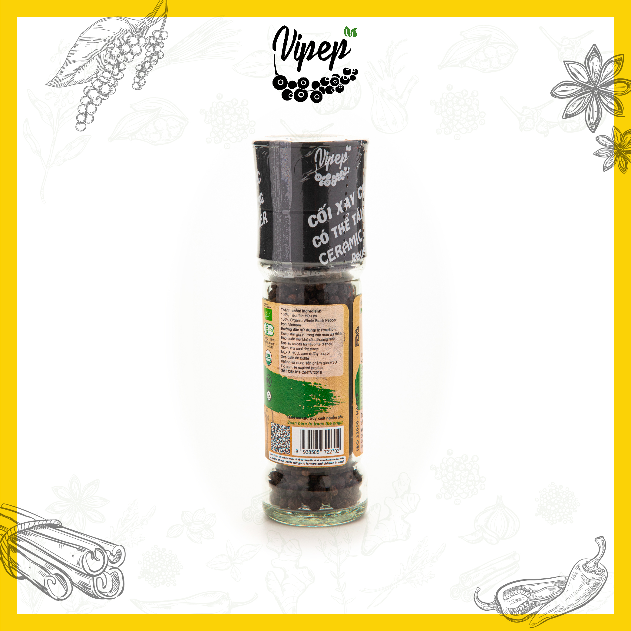 ✨Tiêu Đen Hạt Farmers' Organic Cối Xay Vipep Hũ Thủy Tinh 55g