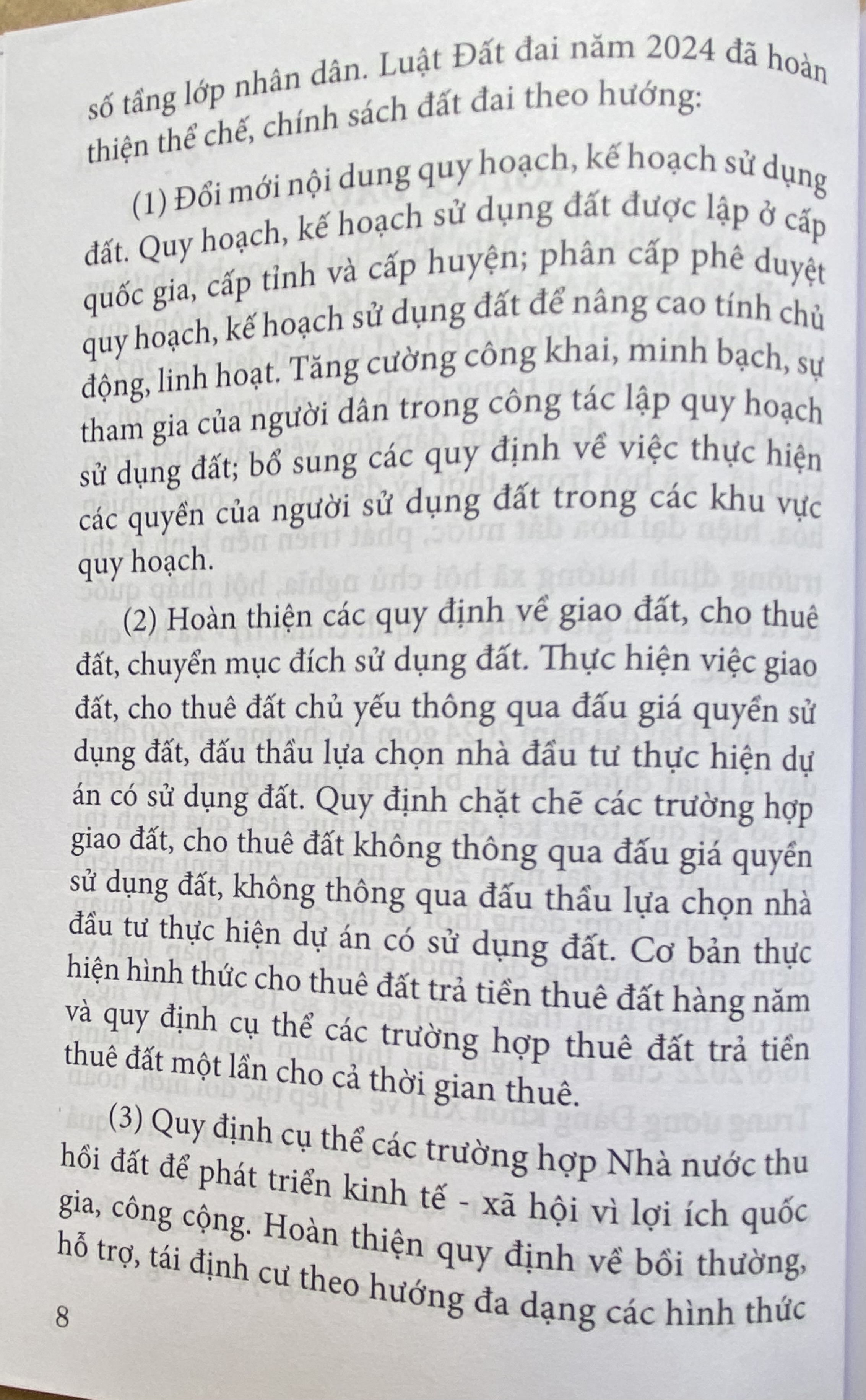 Với mục đích giúp bạn đọc hiểu những quy định mới của Luật Đất đai năm 2024, Nhà xuất bản Tư pháp xuất bản cuốn "Tìm hiểu Luật Đất đai năm 2024" do TS. Nguyễn Đắc Nhẫn - Phó Vụ trưởng Vụ Đất đai, Bộ Tài nguyên và Môi trường làm chủ biên cùng với các tác giả là những người trực tiếp tham gia quá trình xây dựng Luật Đất đai năm 2024 biên soạn. Cuốn sách tập trung nêu và phân tích những nội dung mới, cơ bản của Luật Đất đai năm 2024.