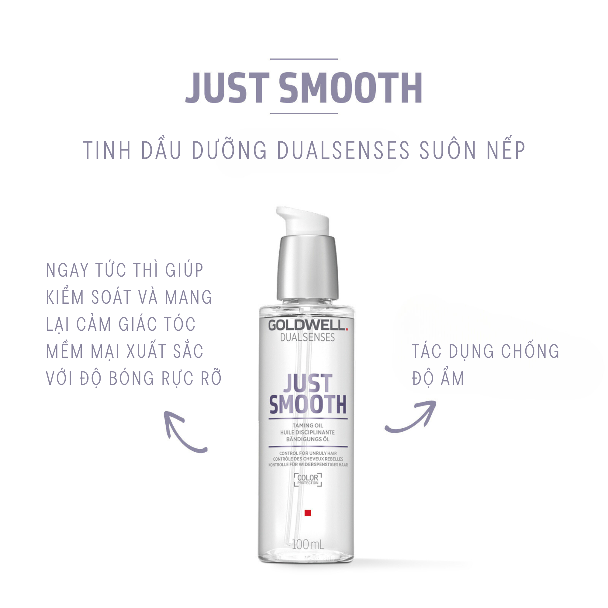 Tinh Dầu Dưỡng Tóc Mềm Mượt Goldwell Just Smooth Giảm Bông Xù, Xơ Rối, Kiểm Soát Tóc Tức Thì 100ml - Phù hợp với tình trạng tóc: + Tóc tơ, mảnh + Bông xù, xơ,