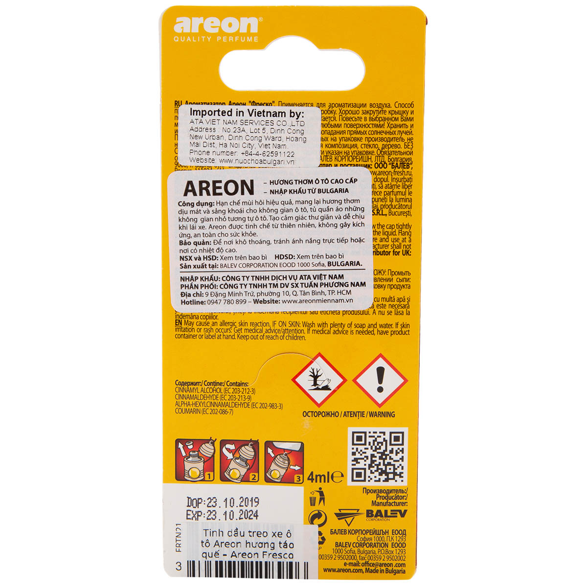 Mua tại Tiktok- Tinh Dầu Treo Xe Ô Tô Areon nhập khẩu từ Bulagria. Chiết xuất từ nguyên chất Táo và Quế châu Âu, tinh dầu treo ô tô hương táo & quế mang lại cảm giác diu nhẹ - thanh mát dành cho không gian xe. KHÔNG chứa các thành phần hóa chất độc hại, AN TOÀN cho mọi đối tượng theo tiêu chuẩn chất lượng EU.