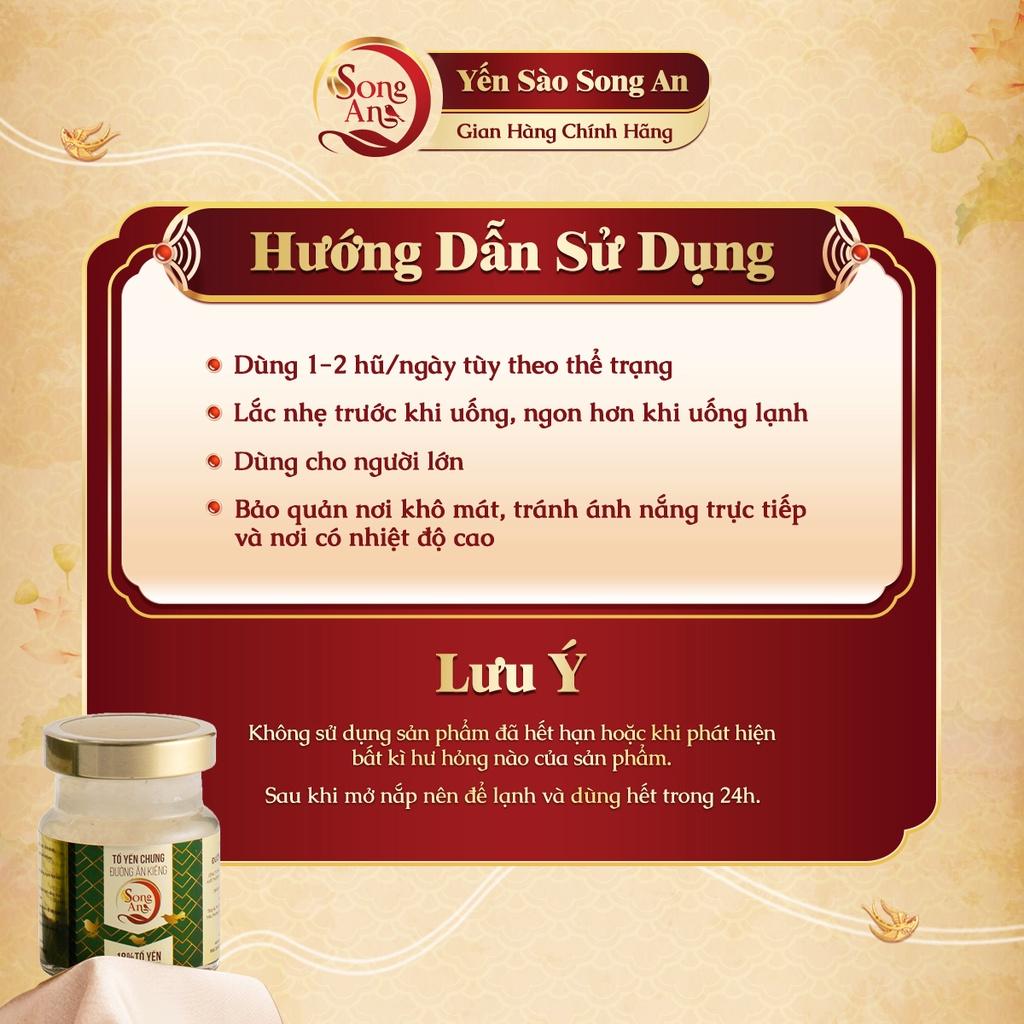 • Yến sào chưng đường ăn kiêng thích hợp cho người bị tiểu đường, huyết áp cao hay ăn kiêng cần bồi bổ HƯỚNG DẪN SỬ DỤNG TỔ YẾN CHƯNG ĐƯỜNG ĂN KIÊNG SONG AN FOOD