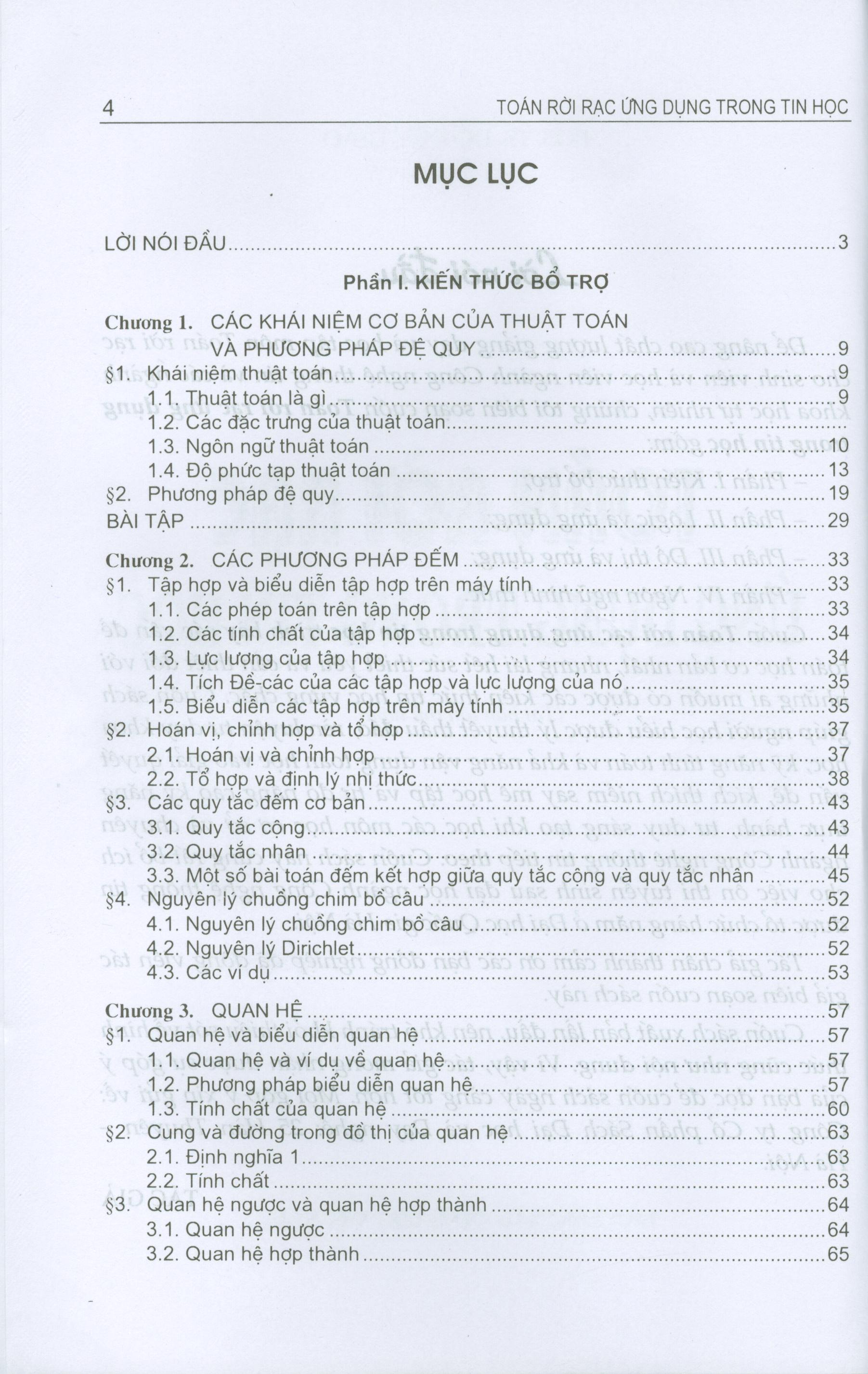 Mua tại TiktokĐể nâng cao chất lượng giảng dạỵ và học tập môn Toán rời rạc cho sinh viên và học viên ngành Công nghệ thông tin và các ngành khoa học tự nhiên, chúng tôi biên soạn cuốn Toán rời rạc ứng dụng trong tin hoc gồm: