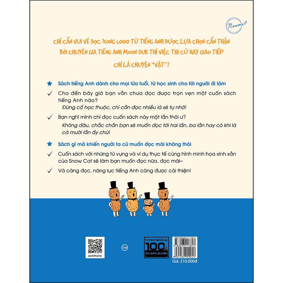 Cho đến bây giờ bạn vẫn chưa đọc được một cuốn sách tiếng Anh nào? Sách tiếng Anh bình thường đã khó, sách từ vựng tiếng Anh còn khó hơn thế nữa chứ. Học được một thời gian thì tạm dừng, tới lúc quay lại thì quên sạch hết trơn, vì thế mà tiến độ học tập vẫn cứ ì à ì ạch, mà bạn cũng chẳng thể nhớ nổi bao nhiêu… Nhưng đừng lo! Cuốn sách này sẽ giúp bạn giải quyết vấn đề ấy. Thay vì nghĩ mình phải học thuộc lòng từng từ một, hãy đọc sách một cách vui vẻ là được. Trong khi nhẹ nhàng lật giở từng trang sách, bạn đã tự động ghi nhớ được tới gần 1.000 từ vựng tiếng Anh rồi đó!
