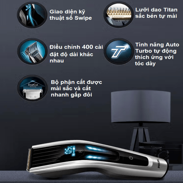 Tông đơ cắt tóc Dualcut, Titanium Philips - HC9450 - Philips là thương hiệu thuộc Tập đoàn Điện tử Hoàng gia Philips được thành lập năm 1891 tại Amsterdam - Hà Lan. Đây