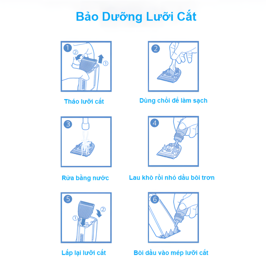 - Bộ sản phẩm bao gồm: Thân máy, 1 cữ lược, dây sạc Type-C, chổi và 1 lọ dầu bôi trơn
