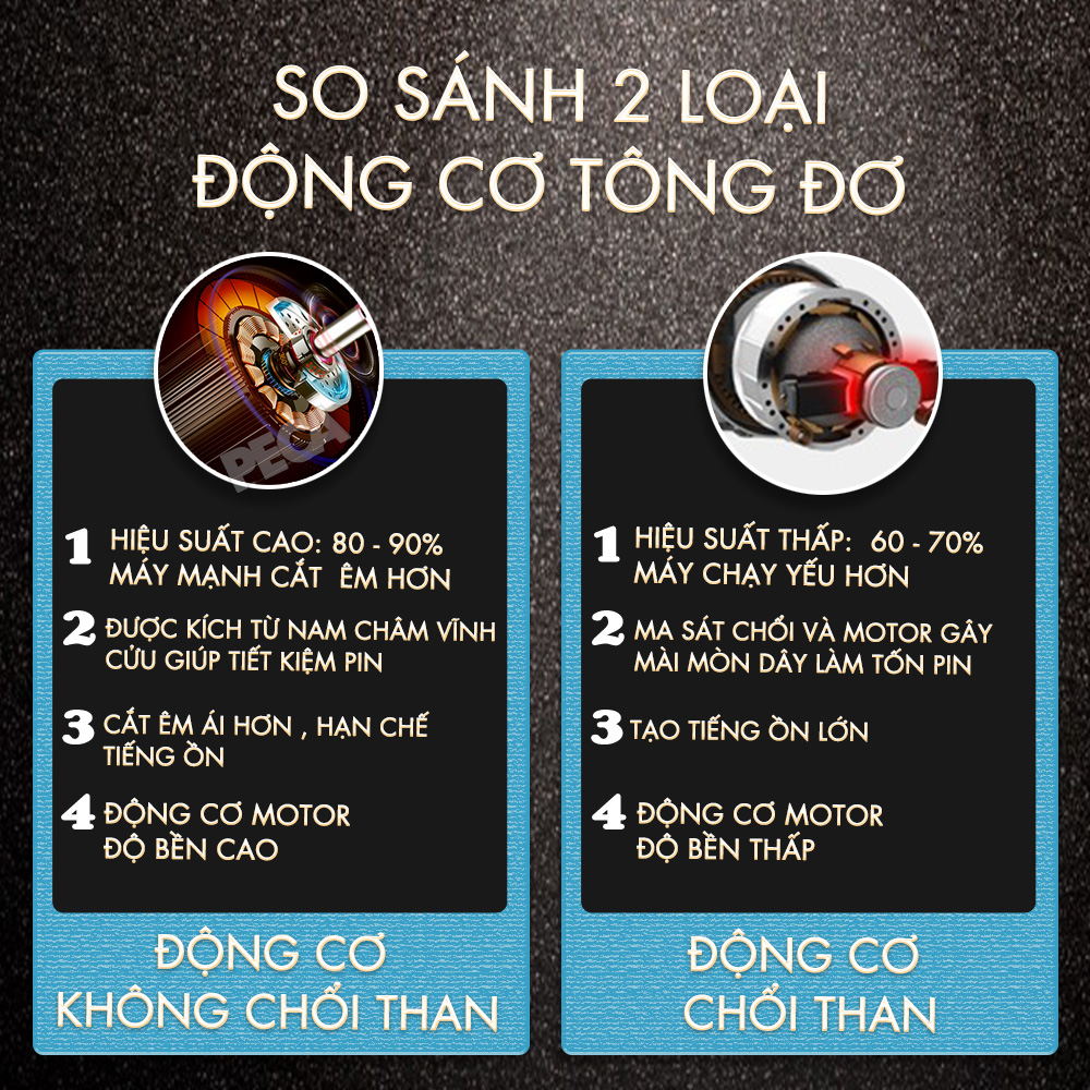 Để có thể thấy rõ sự khác biệt của loại động cơ không chổi than trên chúng ta có thể xem so sánh chi tiết về 2 loại động cơ này:
