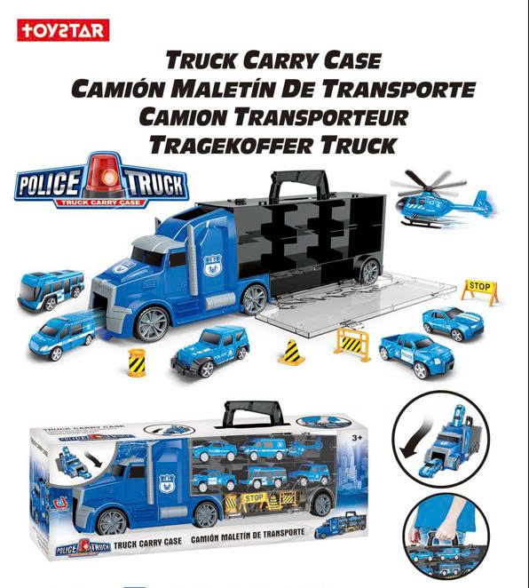 ✨TOYSTAR - 666-02K Mô hình Bộ xe chuyên chở cảnh sát chuyển gồm 5 ô tô, 1 máy bay, 4 biển báo giao thông