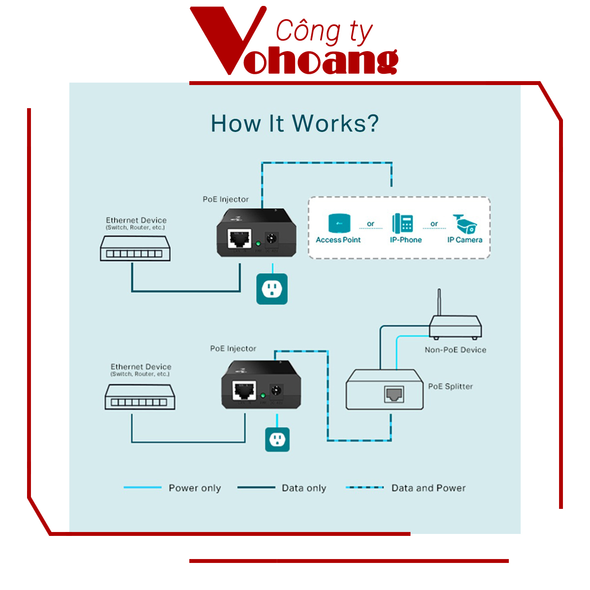 TL-PoE150S - Bộ chuyển đổi PoE Injector là thiết bị có tính tương thích với tiêu chuẩn IEEE 802.3af. Sản phẩm cũng có thể hoạt động được với tất cả các chuẩn IEEE 802.3af PoE có tuân thủ PD (Powered Devices) hoặc PoE nhận Adapters. Có thể kể đến như là TL-POE10R hay các sản phẩm tương tự.
