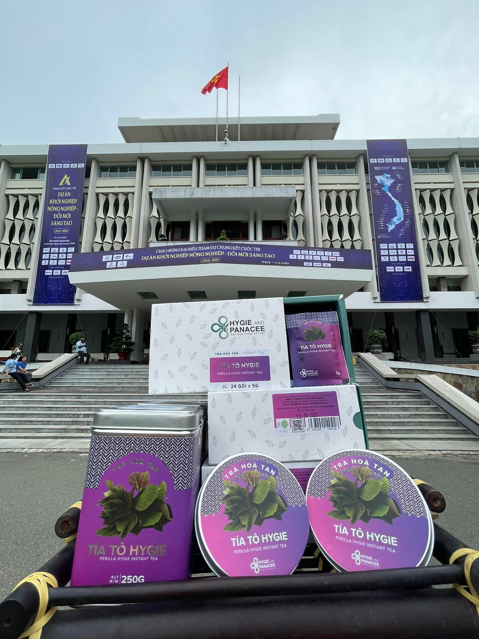 Trà hoà tan Tía Tô Hygie được chiết xuất và cô đặc từ Lá Tía Tô, gừng tươi, cỏ ngọt tạo thành sản phẩm thơm ngon, tiện dụng, có lợi cho sức khoẻ và sắc đẹp.