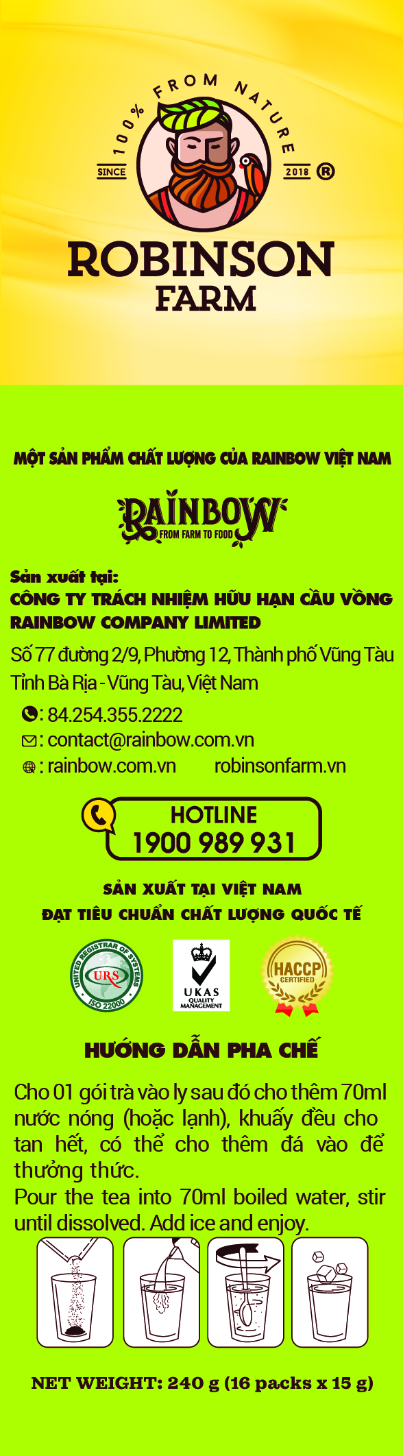 Khối lượng tịnh : 240g ( 16 gói x 15g )