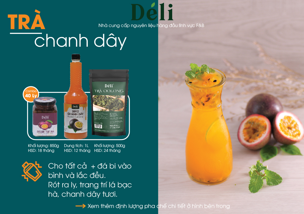 ✨Trà Olong Déli 500gr+ Mứt chanh dây Déli 1lit+ Siro chanh dây Déli 1lit [COMBO nguyên liệu pha chế 40ly trà chanh dây] HSD: 12 tháng, chuyên dùng cho các quán