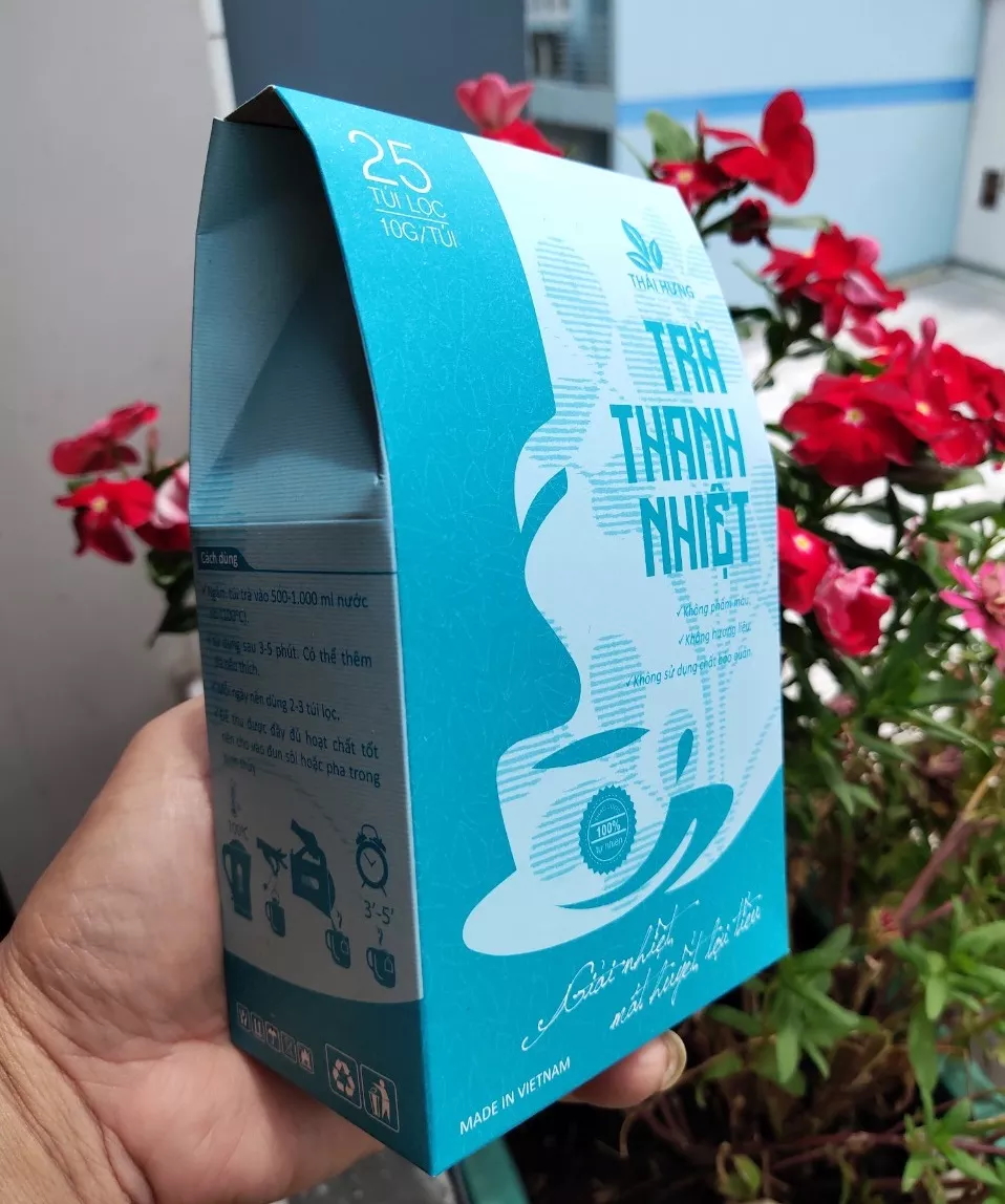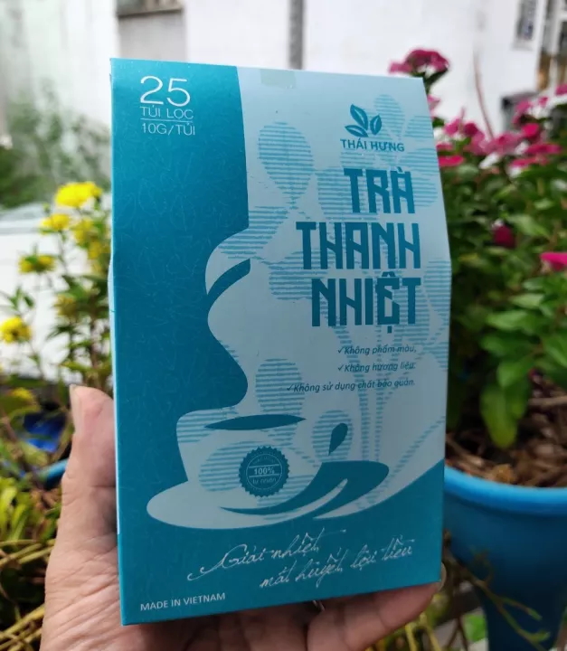 - Trà thanh nhiệt THÁI HƯNG giúp ổn định nội tiết cơ thể, bài tiết những chất độc, giúp cải thiện chức năng gan. Giảm các triệu chứng ngoài da như mụn trứng cá, mụn nội tiết, rôm sẩy hay mẩn ngứa. Giải độc cho cơ thể thường xuyên được xem là cách làm sạch da, tránh hình thành nám và tàn nhang. Cách dùng: Ngâm trà túi lọc vào trong nước sôi (100oC), sử dụng sau 5-10phút. Có thể thêm đá nếu thích. Mỗi ngày nên dùng 2-3 túi lọc. Để thu được đầy đủ hoạt chất tốt nên cho vào đun sôi hoặc pha trong bình thủy. Để có hương thơm quyến rũ, bạn có thể cho thêm vào bình trà một vài bông hoa nhài. Bảo quản: Sản phẩm không sử dụng chất bảo quản, nên để nơi khô ráo, dưới 30oC, tránh ánh nắng trực tiếp Cảnh báo an toàn: Không sử dụng khi bao bì không nguyên vẹn. Số Công bố: 04/THH/2019 Khối lượng tịnh: 250g Hạn sử dụng: 24 tháng kể từ ngày sản xuất (ghi trên bao bì)