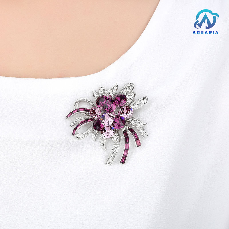 Trâm Cài Áo Nữ Quà Tặng Hoa Đá Đính Saphia Tím Tinh Tế Trang Nhã Sang Trọng (Kèm Hộp)