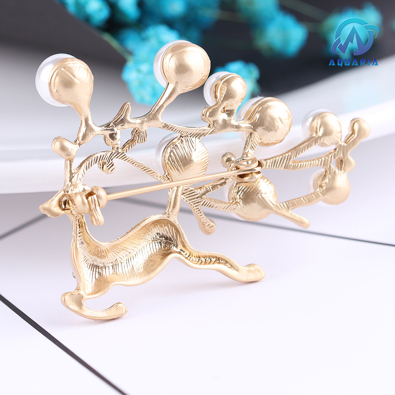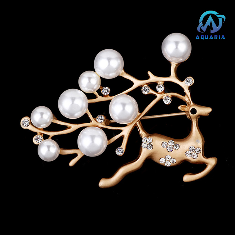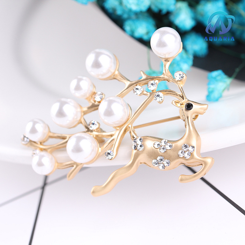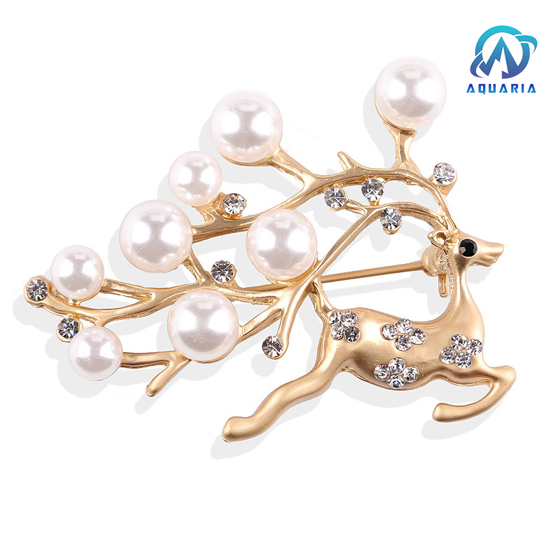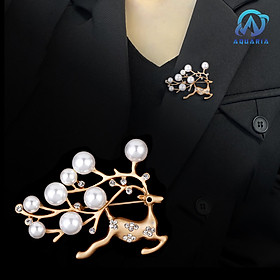 Trâm Cài Áo Nữ Quà Tặng Hươu Vàng Đính Đá Ngọc Trai Trang Nhã Sang Trọng (Kèm Hộp)