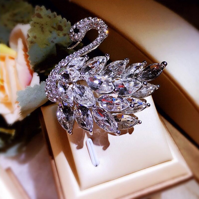 ✨Trâm Cài Áo Thiên Nga Đính Đá Sapphire Dịu Dàng Nữ Quí Phái