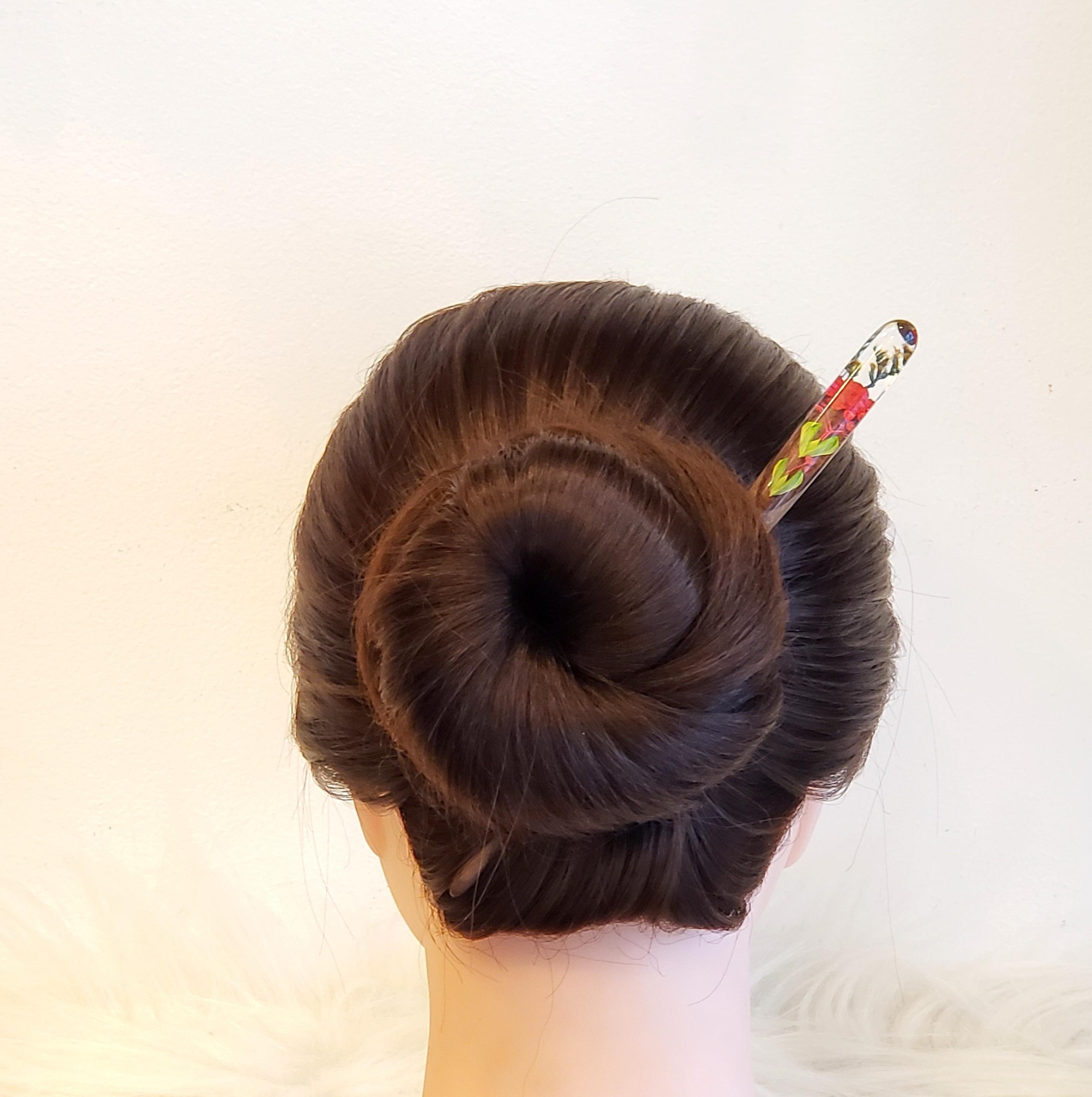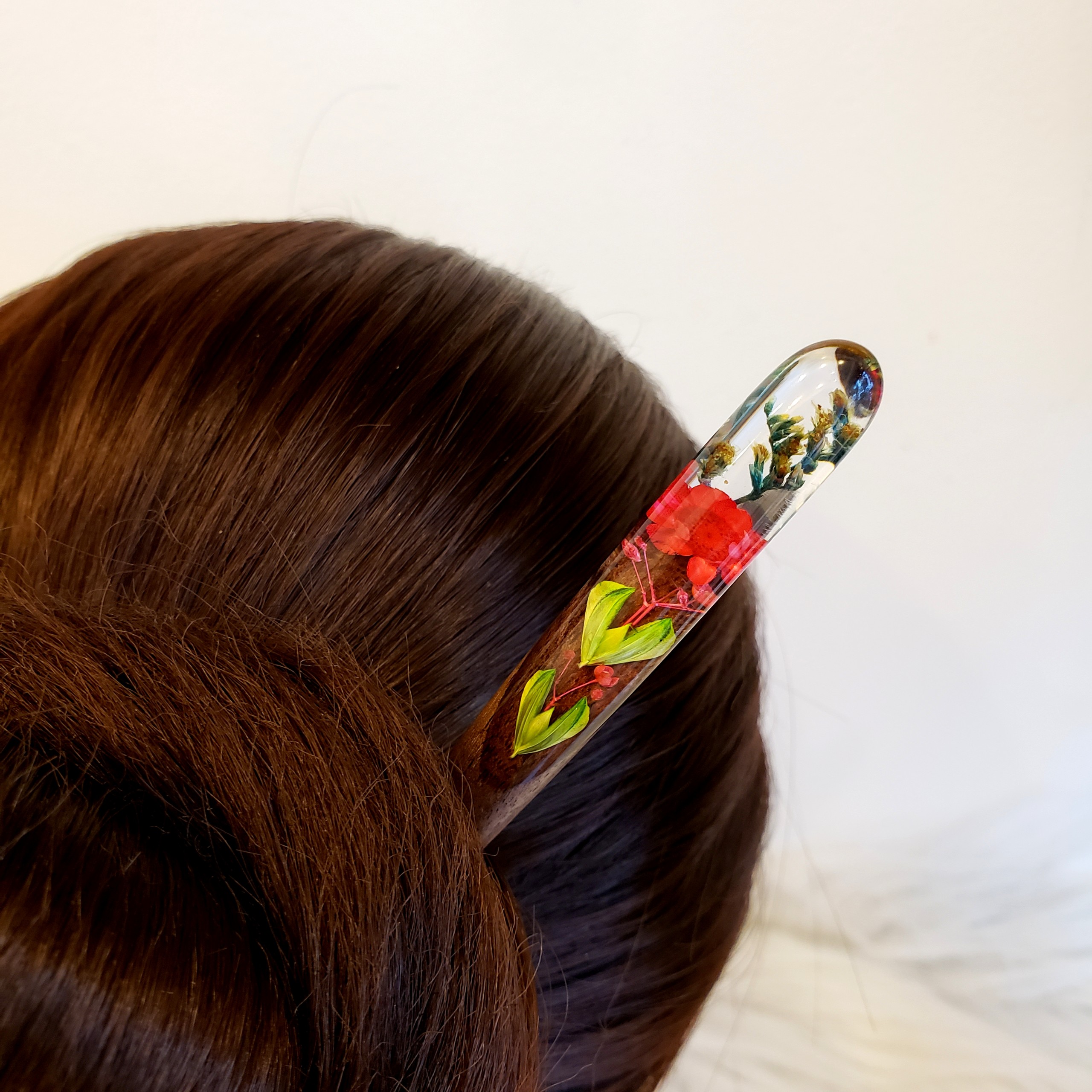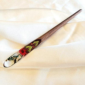 ✨Trâm cài tóc gỗ- resin & hoa snowy đỏ