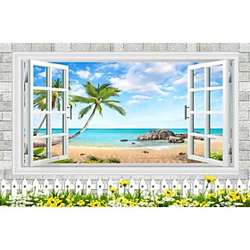 Tranh dán tường 3D cửa sổ phong cảnh sắc nét