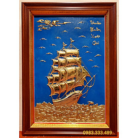 Tranh thuận buồm xuôi gió bằng đồng dát vàng cực đẹp | tranh đồng kt 2m3x1m2 | Ngọc Anh Tranh Đồng
