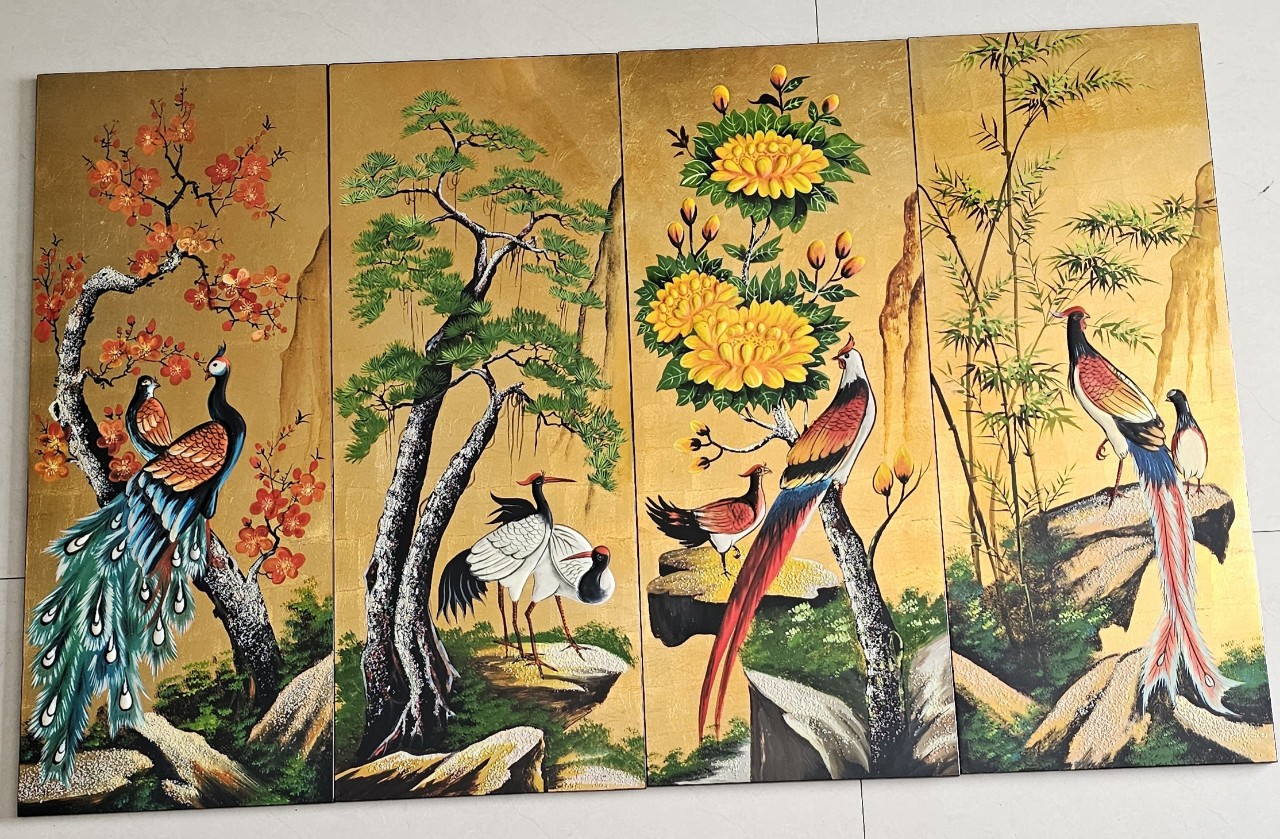 - Kích thước: 50x80 cm gồm 4 tấm( mỗi tấm 20x50 cm)/ 60x120 cm gồm 4 tấm( mỗi tấm 30x60 cm) - Xuất xứ: Sơn mài Việt Nam - Chất liệu: Được làm từ gỗ